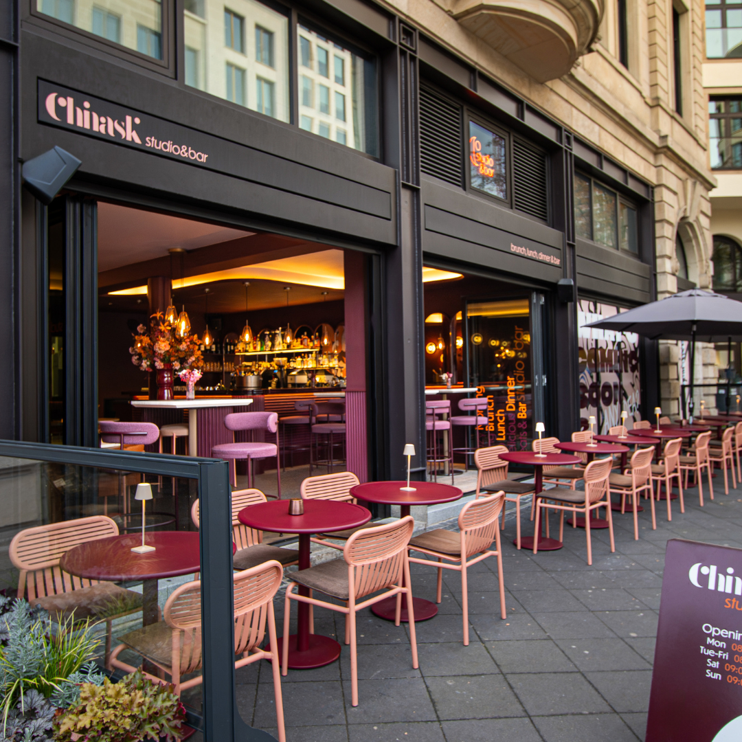 With its trendy atmosphere, creative cuisine, and a bar renowned for premium cocktails and drinks, Chinaski Studio & Bar transforms every event into a true highlight in the city. The floor-to-ceiling windows, which can be fully opened, offer an unparalleled view of the Alte Oper Frankfurt and provide the perfect opportunity to extend your event into the outdoors in good weather.